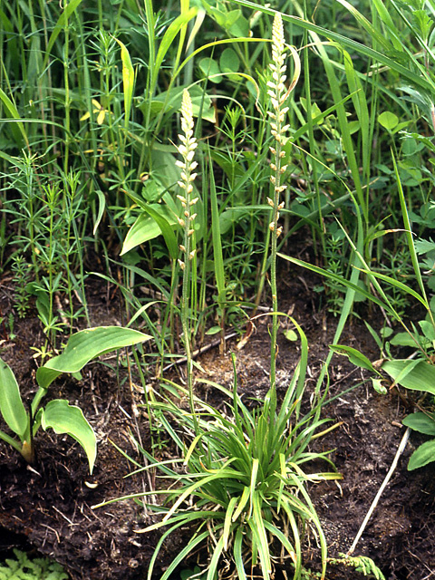 茎は高さ30~50cm程になり、先端に20cmほどの穂状花序に壺型の白い花をつけます。
