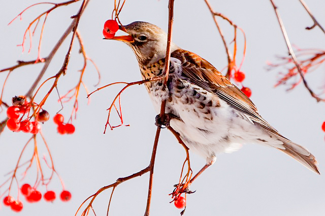 10月ごろ、シベリアから大群で渡ってくる冬鳥の代表で、日本へ着くと群れを解いて、田畑や低い山の林に散らばって生息、