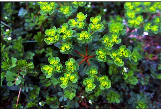 阿蘇の自然 トウダイグサ トウダイグサ 阿蘇ではこの科の種は多く、この草が一番先に咲きます。頂葉と花が一体化して飾り花のようで杯状花序と呼び、この形を茸の明かりをともした灯明台に見立てた名です。頂葉と花が一体化して飾り花のようで杯状花序と呼び、この形を昔の明かりをともした灯明台に見立てた名です。 和名:灯台草 科名: トウダイグサ 季節:春参考阿蘇デジタル博物館 カテゴリ : 阿蘇の自然 更新日: 2012-05-24 (木) 00:00:00 (5001d)