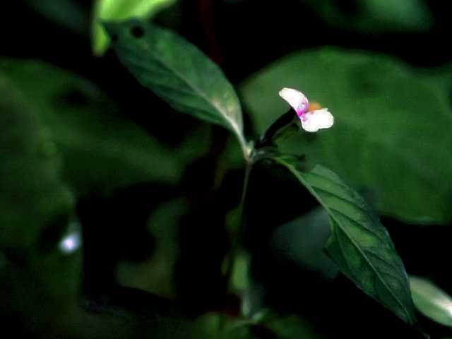 茎先と葉の葉腋から花柄を出して淡紅紫色の唇形の花を咲かせます。