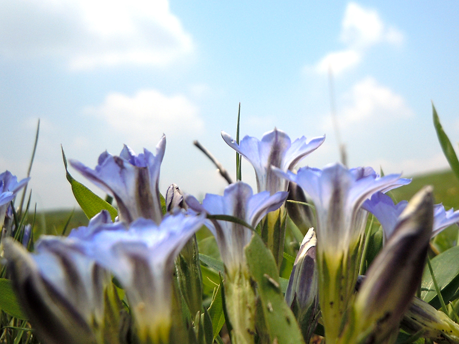 本州から四国・九州の湿った野山に自生し、阿蘇では野焼きのあと、コバルトブルーの星の形をした花を草原一面に咲かせて、阿蘇に春を告げます。