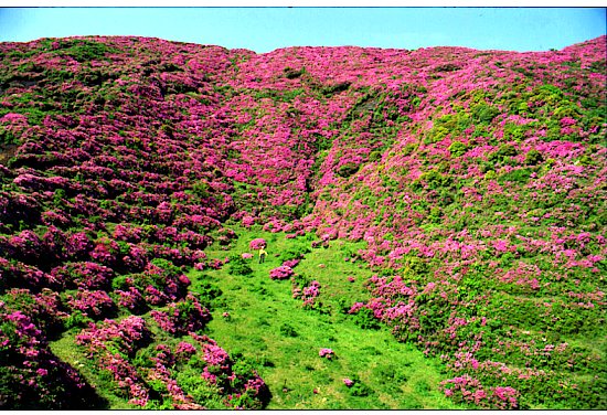 5月初句、中岳周辺、、の山頂などで咲いた後、6月上旬には標高1592メートルの高岳頂上で咲きほこります。
