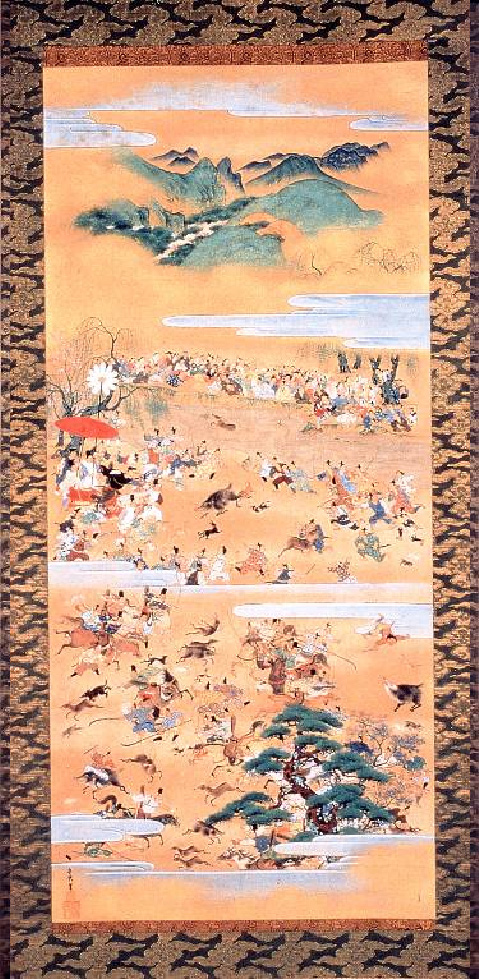 狩は武士団の軍事訓練の一環として、諸将を招集し、勢子(せこ)の動員から隊の編成、狩場での諸将の指揮振りを見る等、大規模なものとなりました。