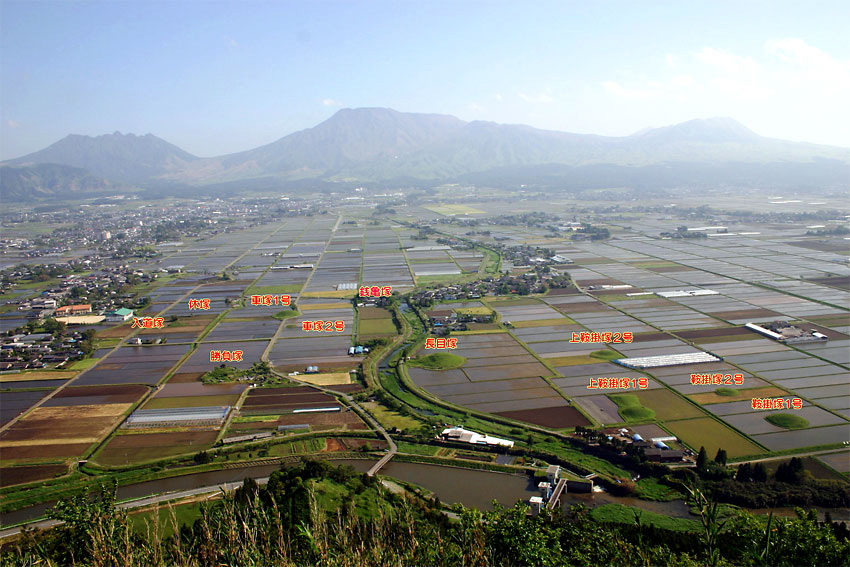 中通古墳群は5世紀から6世紀にかけて造られたものとされ、古代の阿蘇地方を開発し、支配した豪族「阿蘇の君」一族の墓であろうと考えられています。中心的なものは長目塚で、県内最大級の前方後円墳です。それを越える規模のものは県内に見当たらないため、豪族の勢力がいかに大きなものであったか想像できます。また、前方後円墳の出現は、大和朝廷の影響が及んだことを裏付けています。