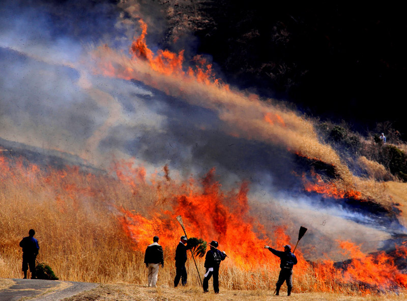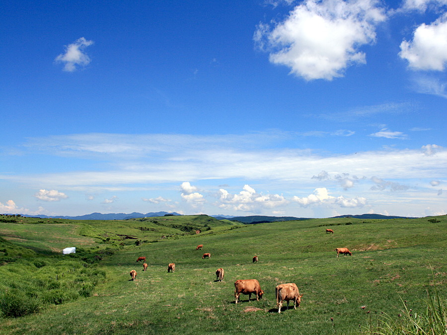 阿蘇は北緯33度付近にあり、草原は主に海抜600~800メートルの高さに広がっています。年平均気温は10度~12度で、年間降水量は3000ミリを超えます。このような自然条件下では通常はほぼ全域が森林で覆われるのが自然本来の姿で、実際、外輪山西側の北向谷や西北側斜面の菊池渓谷、南外輪山内壁の狼ヶ宇土及び外側斜面の大矢国有林、それに阿蘇五岳の一つで東端に位置する根子岳などにはまとまった森林が発達しています。また、成長したスギやヒノキの人工林が実証しているように今でも森林を発達させるだけの地力もあります。にもかかわらず草原の状態にあるのは人為によっているからです。即ち、阿蘇では数百年前から1000年以上の長い年月にわたって続けられてきた放牧・採草・野焼きなどの人的行為によって森林への遷移が妨げられているので、人為による半自然草原なのです。