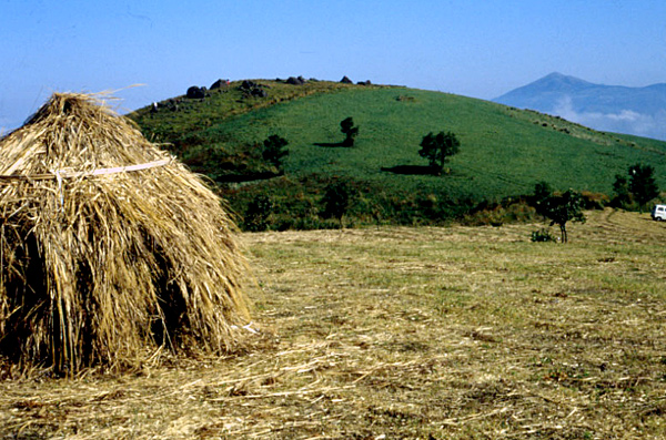 阿蘇北外輪山の大観峰から小国方向へ国道212号を北上し唐笠松から西へ折れて進むとマゼノ渓谷がある、その南側に広がる草原の中に押戸石山があります。