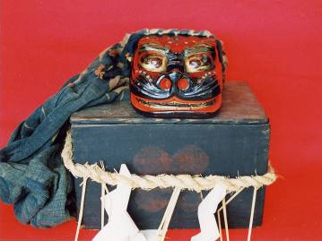 獅子の家では現在でも、正月になると獅子頭を収納箱から取り出し、スス払いなどして清め、祝詞(のりと)をあげて座敷で舞われます。舞った後は、獅子頭は系図と共に箱に納められ、新しい〆縄(しめなわ)をかけて神棚で安置します。