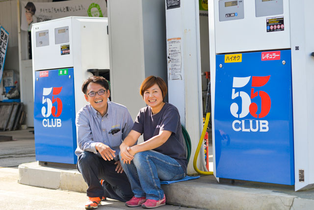 道路をはさんで、食料品店とガソリンスタンドを営む。