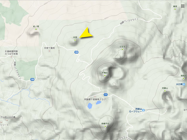 米塚は、阿蘇五岳の一角である杵島岳(きしまだけ)と往生岳(おうじょうだけ)から派生(はせい)した火口です。