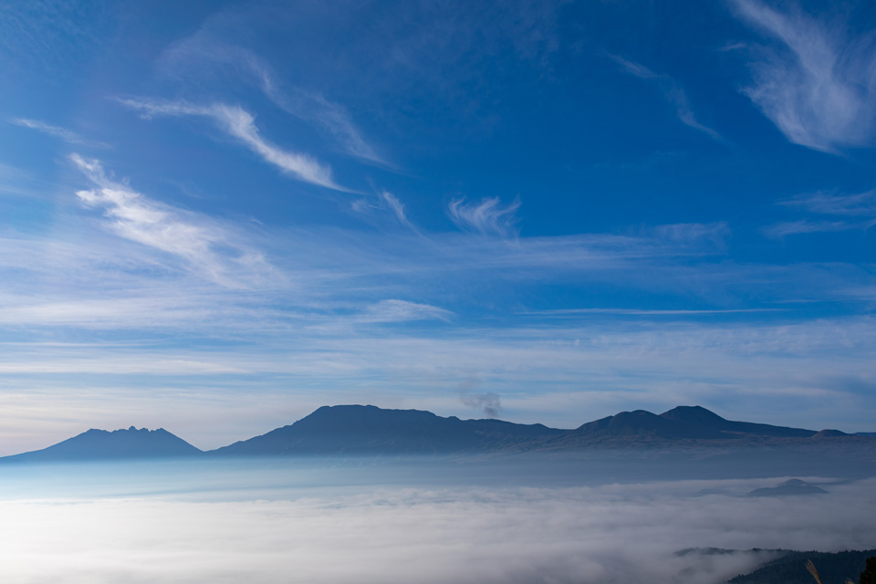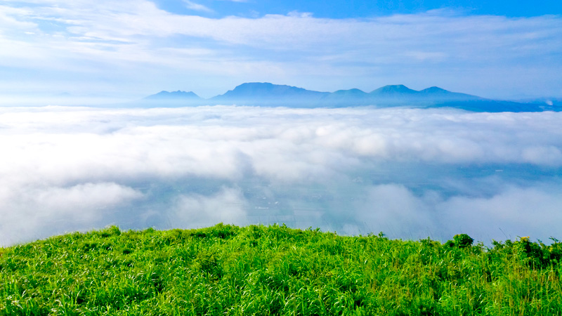 阿蘇での雲海は早朝、や五岳など、高いところから見ると、9万年前に存在したのカルデラ内を埋める湖のように見えます。