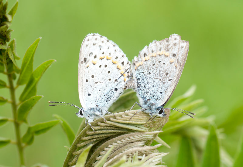 阿蘇の自然 オオルリシジミ オオルリシジミ概要美しい青紫色の羽が特徴のシジミチョウで、5月上旬に阿蘇の草原で見られます。 本州と九州に分布し熊本県が分布の南限となっています。 幼虫はクララの花・蕾を食べます。 熊本県の特定希少野生動物指定種です。画像 更新日: 2012-02-02 (木) 00:00:00 (5113d)