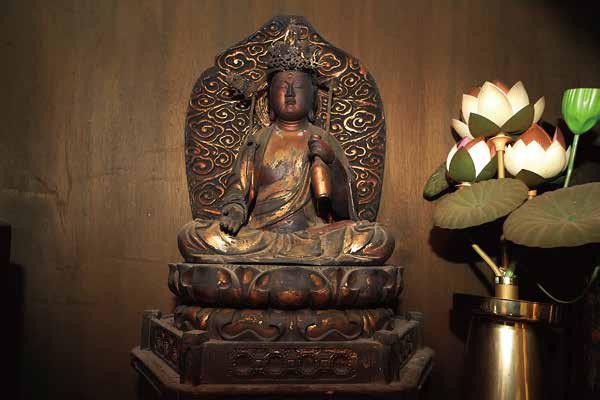 特徴は、髪は縮れて肩までの長さ、肩にショールのような布をかけ、おなかの前で両手を集め、右手に金剛杖、左手に独鈷杵(とっこしょ)を持ちます。
