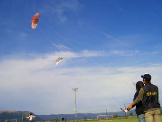 体験 スポーツカイト スポーツカイト風を見極めスポーツカイトを操って風と遊ぶ。 和凧のように風まかせではなく、2本のラインを自由自在に操って上下左右、回転、いろいろな飛ばし方のできる体験です。 アクロバット飛行や編隊飛行など、簡単でしかも奥が深いスポーツです。写真参考阿蘇ネイチャーランド カテゴリ : 体験 更新日: 2012-05-23 (水) 00:00:00 (5005d)