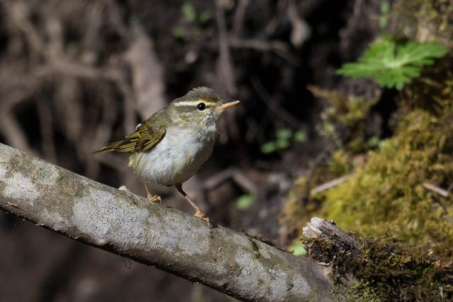 上面は淡い緑褐色で覆われ下面は白い羽毛で覆われています、体側面から腹部にかけての羽毛は黄色や緑褐色みを帯びます。