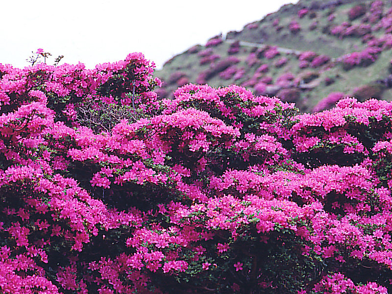 レンゲツツジは、市房山のアカヤシオが5月中旬に山頂付近を彩り、ツクシアケボノツツジともいわれ県指定の天然記念物にもなっています。