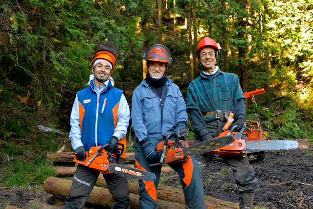 林業三十年の山男、山部博典さん(写真中央)は言う。