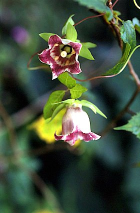 つる性の多年草で他の草に絡み付き成長します。花の色や内面に紫色の斑点があり年寄りに似ていることからこの名。