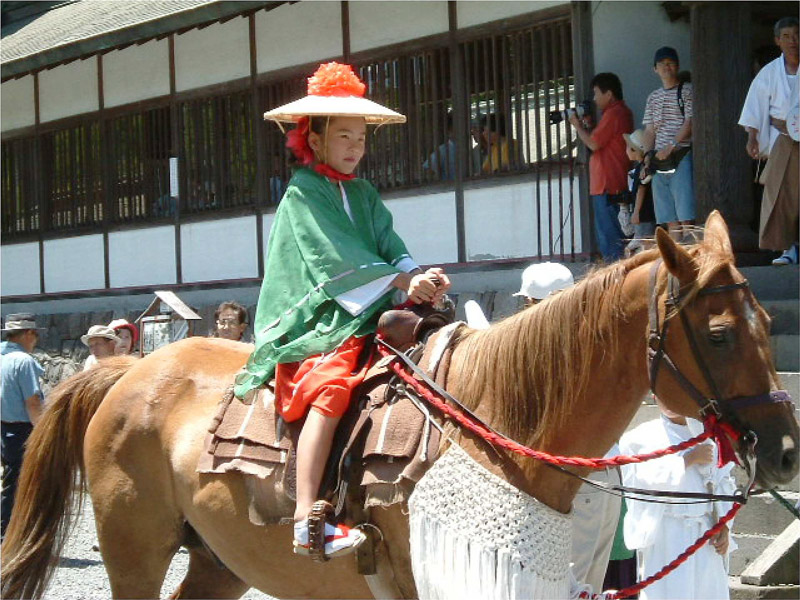 2日早い7月26日に行われる国造神社のおんだ祭りは、神輿が1基、御仮屋は1ヶ所、宇奈利も6名と小規模ですが、祭りの内容は同じで、北外輪山の山裾の杜を背景に、古代の儀式をまの当たりにしているようです。