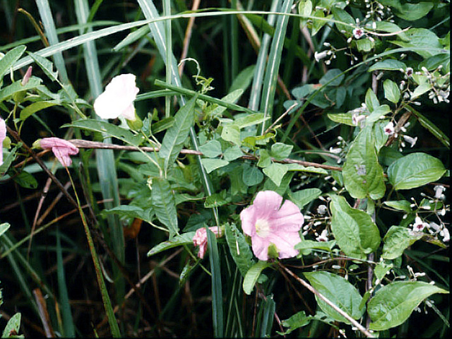 茎は、左巻きで他の植物に絡み付いて繁茂します。