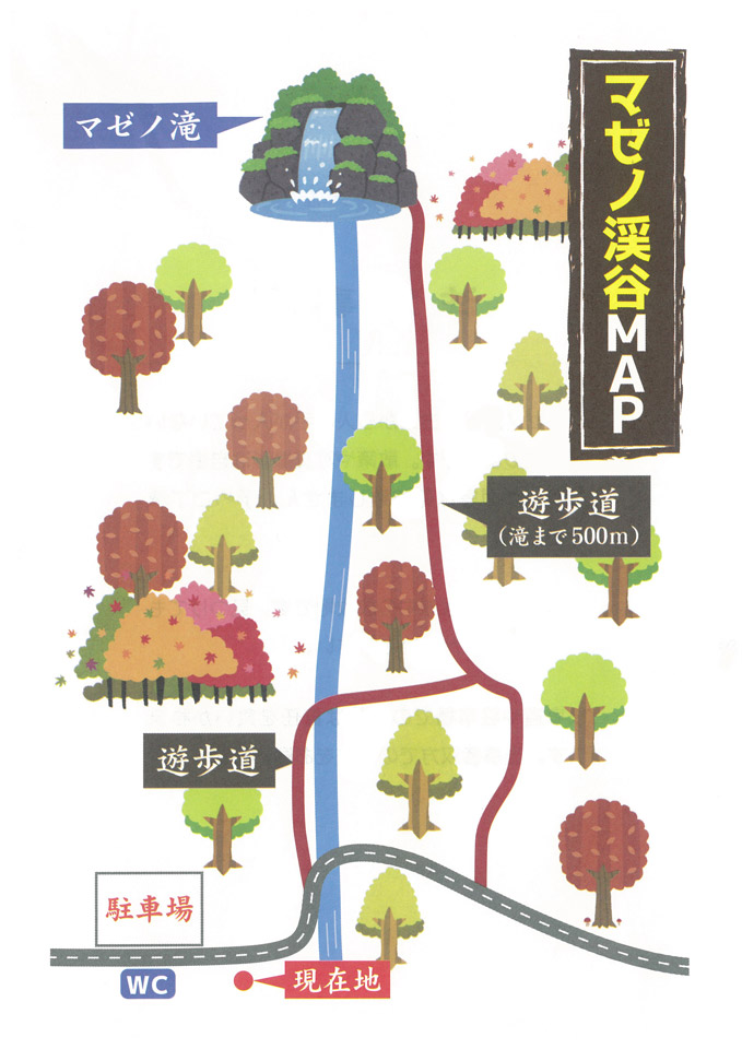 南小国町の中原(なかばる)地区にある自然美あふれる渓谷(けいこく)です。南小国町を流れる中原川の上流域で、地形が馬の背中に似ていることから、この名が付きました。