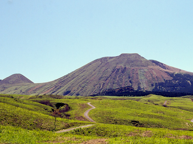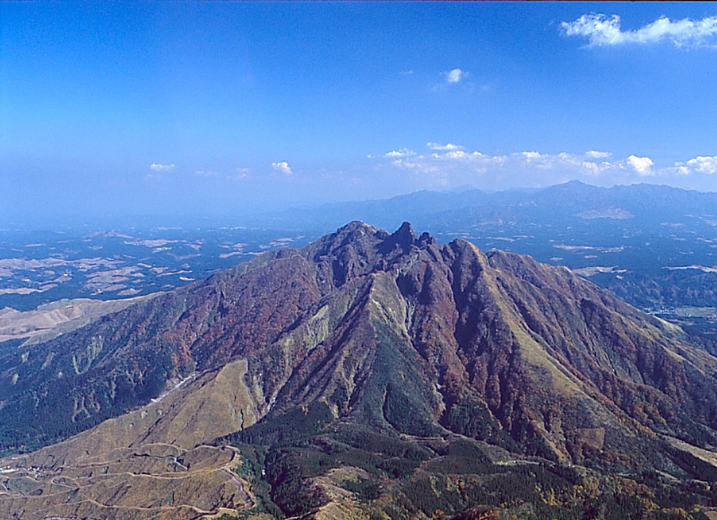 阿蘇五岳の東端に位置する根子岳と西に位置する杵島岳・往生岳は、対照的な侵食地形を持つ山です。