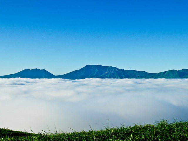 日中と夜間の気温差が大きくなる秋には阿蘇谷に広がる雲海に阿蘇五岳の涅槃像が浮かび上がり、神秘的(しんぴてき)な姿を見ることができます。