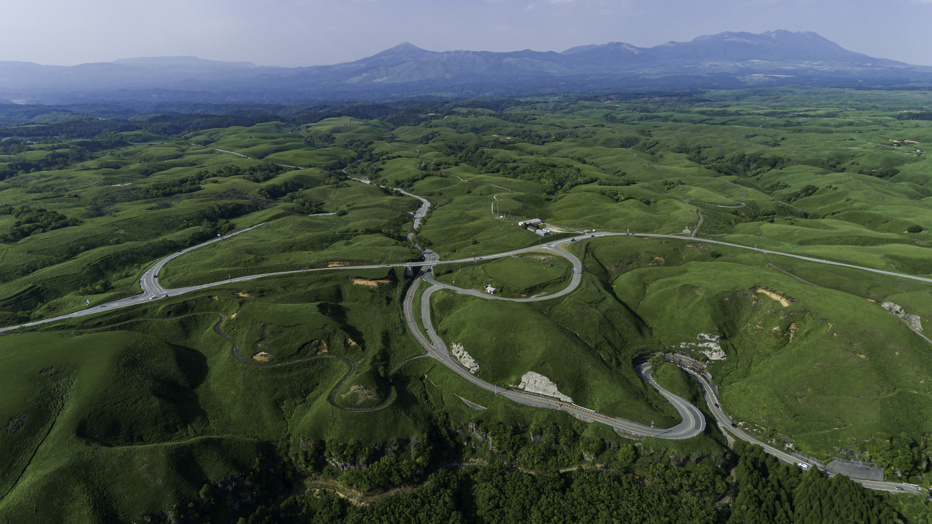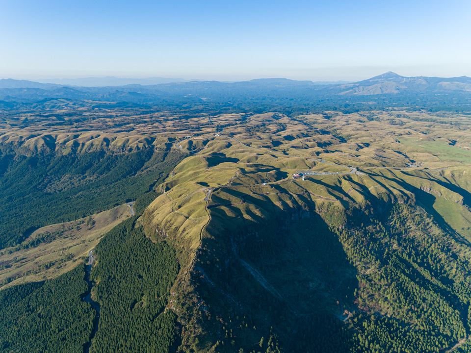 先端に設けられた展望所からは仏様の涅槃像(ねはんぞう)にも例えられる阿蘇の峰々や田園地帯の広がる阿蘇谷をカルデラ東壁(とうへき)から西壁(せいへき)までの大パノラマを一望できます。