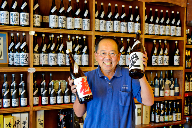 創業ほぼ九十年の老舗酒店三代目店主、岡本宗徳さんは、内牧温泉街の繁栄会の代表として、元気な地域づくりにも意欲的。