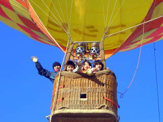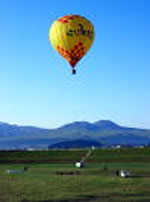 ロープで係留した熱気球は、高さ約40mまで上昇。雄大な景色を見下ろすと気分爽快!!