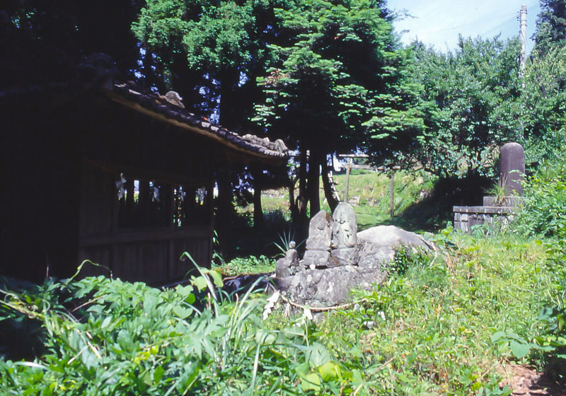 碑の南側には「坂梨財産区」とあり、町村合併前の坂梨村が昭和20年に水道を設置した記念碑です。ここから100㍍ほど杉木立を登ると、外輪山の中腹から湧き出す水を四角形の大型タンクに導き、そこから全戸に排水しています。
