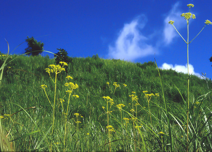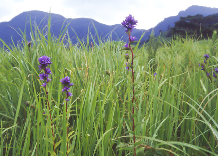 しかし、近年は草原の衰退で豊かだった盆花も減少傾向にあり、ヒゴタイ・ヤツシロソウ・ハナシノブは、平成3年11月に「熊本県希少野生動植物の保護に関する条例」により、希少植物に指定され保護されることに。また、ハナシノブは環境省の「絶滅のおそれのある野生動植物の種の保存に関する法律」により、国内特定希少野生植物にも指定されています。