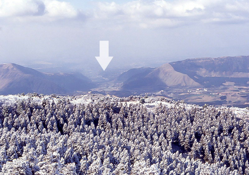 そこで、外輪山の一部を蹴破ることにした。一度目に挑戦した場所はなかなか蹴破れない。というのもその場所は山が二重になっていているからで、以後「二重(ふたえ)ノ峠」と呼ばれるようになった。