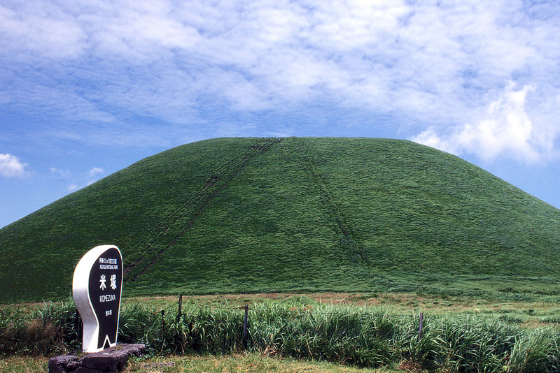 阿蘇の神話では、健磐龍命(たけいわたつのみこと)が阿蘇中の米を積み上げたので「米塚」と呼ばれ、頂(いた)きのくぼみは米を掌(てのひら)ですくって人々に与えた跡と伝えられています。