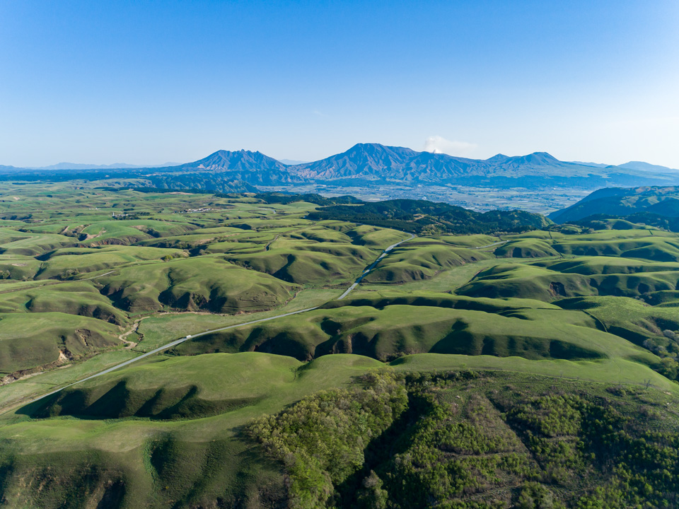 阿蘇の植物景観(しょくぶつけいかん)の中心はやはりその広大な草原です。かつてはその広さは6万ヘクタールともいわれ、日本を代表する山地草原です。漱石が詠んだのは主に中央火口丘北麓(ちゅうおうかこうきゅうほくろく)の草原のようづすが、外輪山上の草原はさらに広大です。北外輪山上には二重の峠(ふたえのとうげ)から九州横断道路(きゅうしゅうおうだんどうろ)まで約1万ヘクタールもの端辺原野が広がり、東部の波野ヶ原、東南部の山東原野と続き、さらに大分県の久住山麓(くじゅうさんろく)へとつながっています。久住高原と併(あわ)せた草原の広さは西日本最大規模となり、その広がりは日本の箱庭的(はこにわてき)な景観(けいかん)が多い中にあって大陸的ともいえ、北海道や東北地方のものと並び、日本を代表する草原となっています。