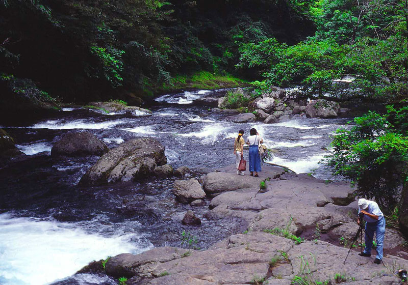 一帯は阿蘇外輪山を取り囲むモミ、ツガ、ケヤキなど広葉樹の原生林に覆われ、「渓谷美の極致」と言われています。