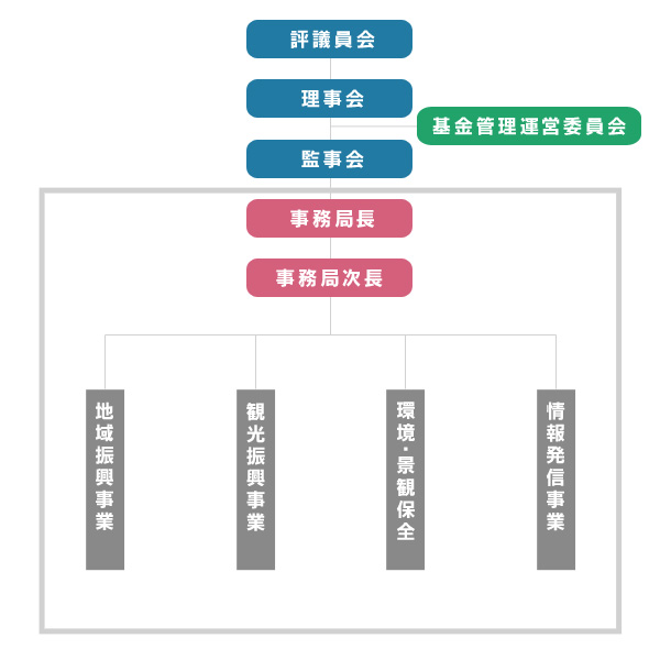 平成2年5月に旧阿蘇郡12ヶ町村と熊本県が基金を出捐し、その運用益をもとに、地域全体が「自立自興」の精神を掲げ、恵まれた自然、景観との調和を図りながら魅力ある地域の振興を図る組織。基金の増額に伴い、地域振興、観光振興、環境・景観保全、情報発信「へと取り組みは発展し、九州中央部に位置し熊本県の宝である「阿蘇」を活性化させる実績は各方面から注目され、評価されてきました。