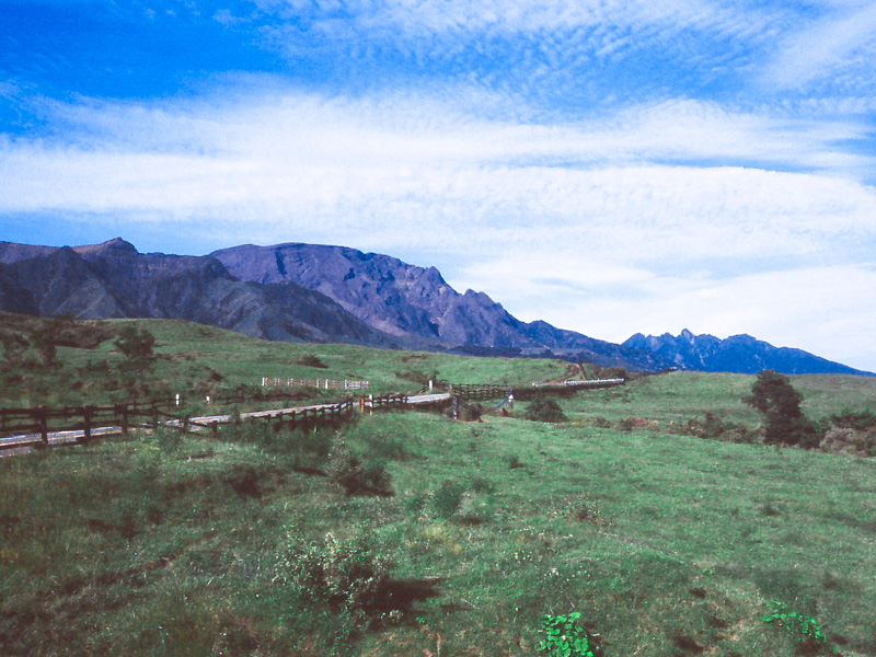国道57号線と山上を結ぶ防中線、赤水線、国道325号線と山上を結ぶ吉田線の3線からなります。防中線は阿蘇町坊中から山上に至る15.155㎞で日本道路公団により有料道路として改良舗装され、昭和32年(1957)10月6日共用開始、45年7月1日熊本県に引き継がれています。赤水線は長陽村赤水から杵島岳防中線との接合点までの9.912㎞、県が建設、供用開始は40年1月21日。吉田線は白水村吉田から山上付近坊中線との接合点までの12.995㎞、熊本県が建設、供用開始は51年7月1日。別府-阿蘇-雲仙を結ぶ九州観光ルートの中心に位置し、阿蘇登山観光の利便性に大きく関わっています