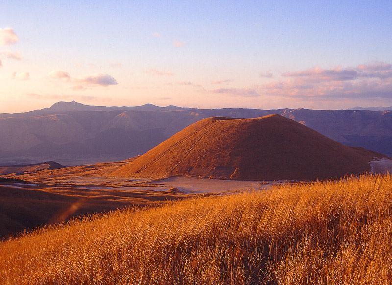 阿蘇にあって人々の記憶に強く残る景観で、均整(きんせい)のとれた円錐(えんすい)です。