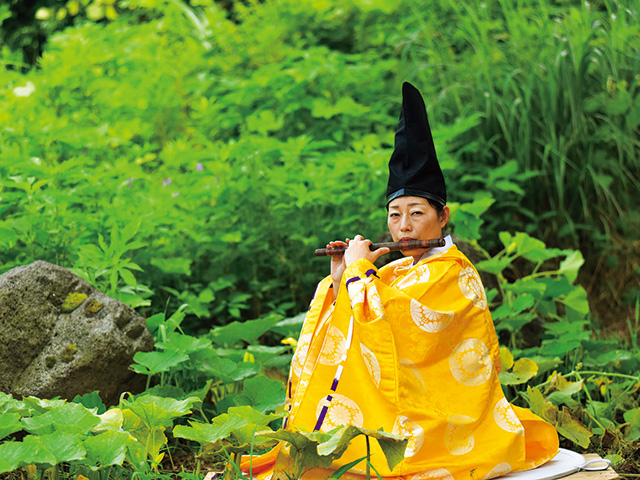 初めて触れたのが、竹の管でつくられた「舞い立ち昇る龍の声」にたとえられる横笛・龍笛である。「でも、どう吹こうがまったく音が出ないのです」。懸命に取り組んだ。古代から脈々とつづく音楽だが、基本的に楽譜というものはない。「口伝(くでん)」である。だからこそ、時を超えて語りかける「生の声」を感じ取れるのだ。