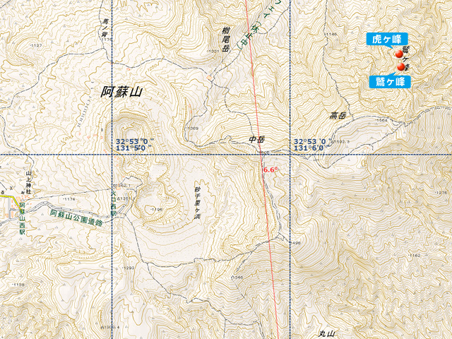 阿蘇高岳の北面に屹立(きつりつ)する赤褐色(せっかしょく)の岩稜(がんりょう)。