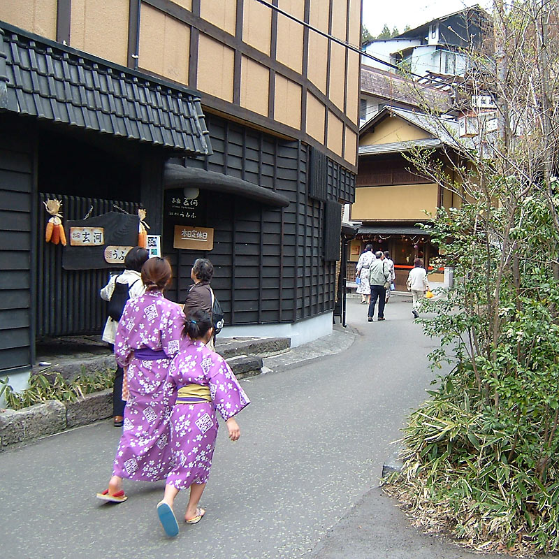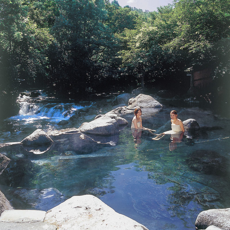 全ての旅館に露天風呂があり、旅行者は「入湯手形」を購入することにより、3カ所まで選んで入浴することができる。杉の間伐材を利用した『手形』は温泉街の中心に位置する旅館組合の事務所兼案内所や旅館で入手できる。