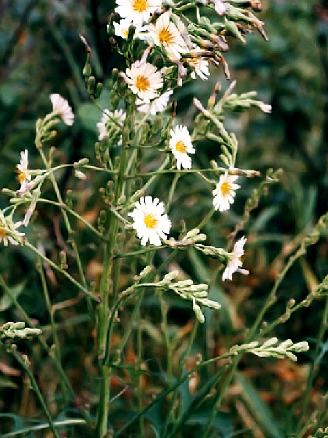 茎の上部に花径2cm程の頭花を円錐状に咲かせます。