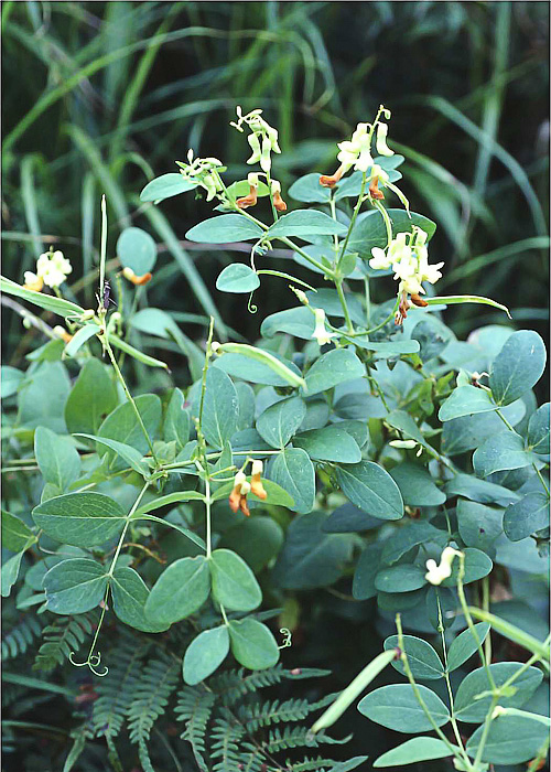 阿蘇の自然 イタチササゲ イタチササゲ概要マメ科レンリソウ属 多年草 2~4対の偶数羽状複葉で先端は分岐した巻きひげとなります。 小葉は4~8枚で楕円形をしています。 変色後の黄褐色がイタチの体色に似ていることからこの名がつきました。季節(開花期)7~8月 花は葉腋の総状花序に10~30個つき、黄白色でのちに黄褐色に変わります。環境朝鮮、中国、ロシア 本州、九州 山地の日当たりのよい草原に生育します。利用画像 更新日: 2014-09-05 (金) 00:00:00 (4170d)