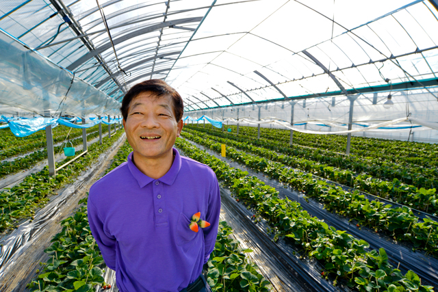 と言う宮本陽一さんはJA阿蘇中部イチゴ部会の部会長であり、腕の確かさで知られている。