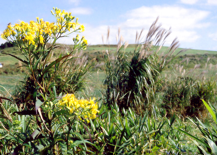 阿蘇の自然 キオン キオン概要キク科キオン属 多年草 高さ50~100cm、茎は直立します。 葉は互生、長さ5~15cmで長楕円形、葉縁に小さな鋸歯があります。季節(開花期)8~9月 茎の先に約2㎝ほどの花を房状に咲かせます。総苞片は10~15個あります。 舌状花は5枚、間隔が不均等でやや不定にねじれる。 筒状花は10個つきます。環境東アジア、ヨーロッパ 北海道、本州、四国、九州 山地の草原に生育します。利用画像 更新日: 2014-09-10 (水) 00:00:00 (4165d)