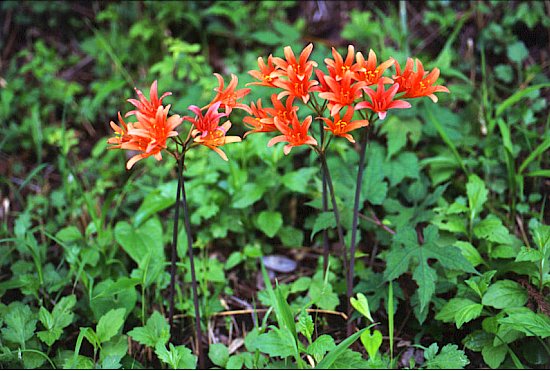 花は30~50cmの花茎の先にオレンジ色の花を数輪つけます。