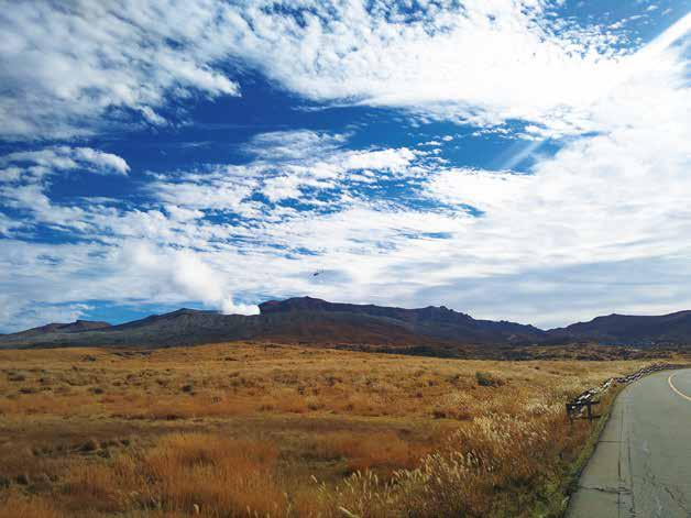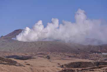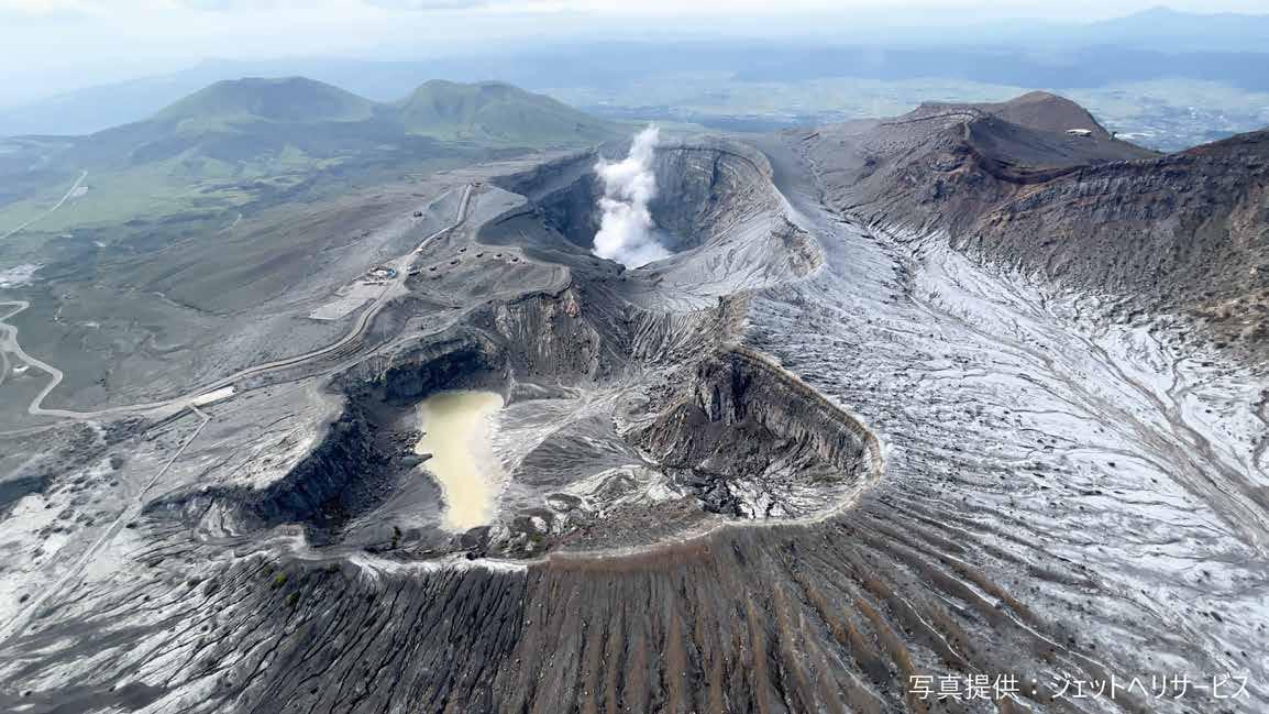 火を噴<壮大な阿蘇火山は、古くから自然神としてあがめられてきました。阿蘇中岳の噴火口は周囲4キロと巨大で、激しく白い噴煙を上げる様子を間近で見ることができます。