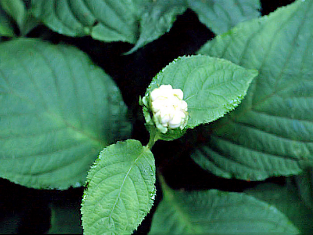 花序のまわりには,数個の白色の装飾花があります。