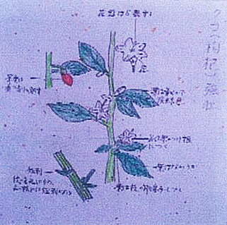 果実は赤く熟したものを丁寧に摘み取り、そのままホワイトリカーに漬けて薬用酒にする。