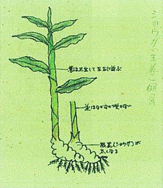 ひねしょうが よい秋に掘り上げ、根茎をとり、根は除いて水洗い、乾燥する。